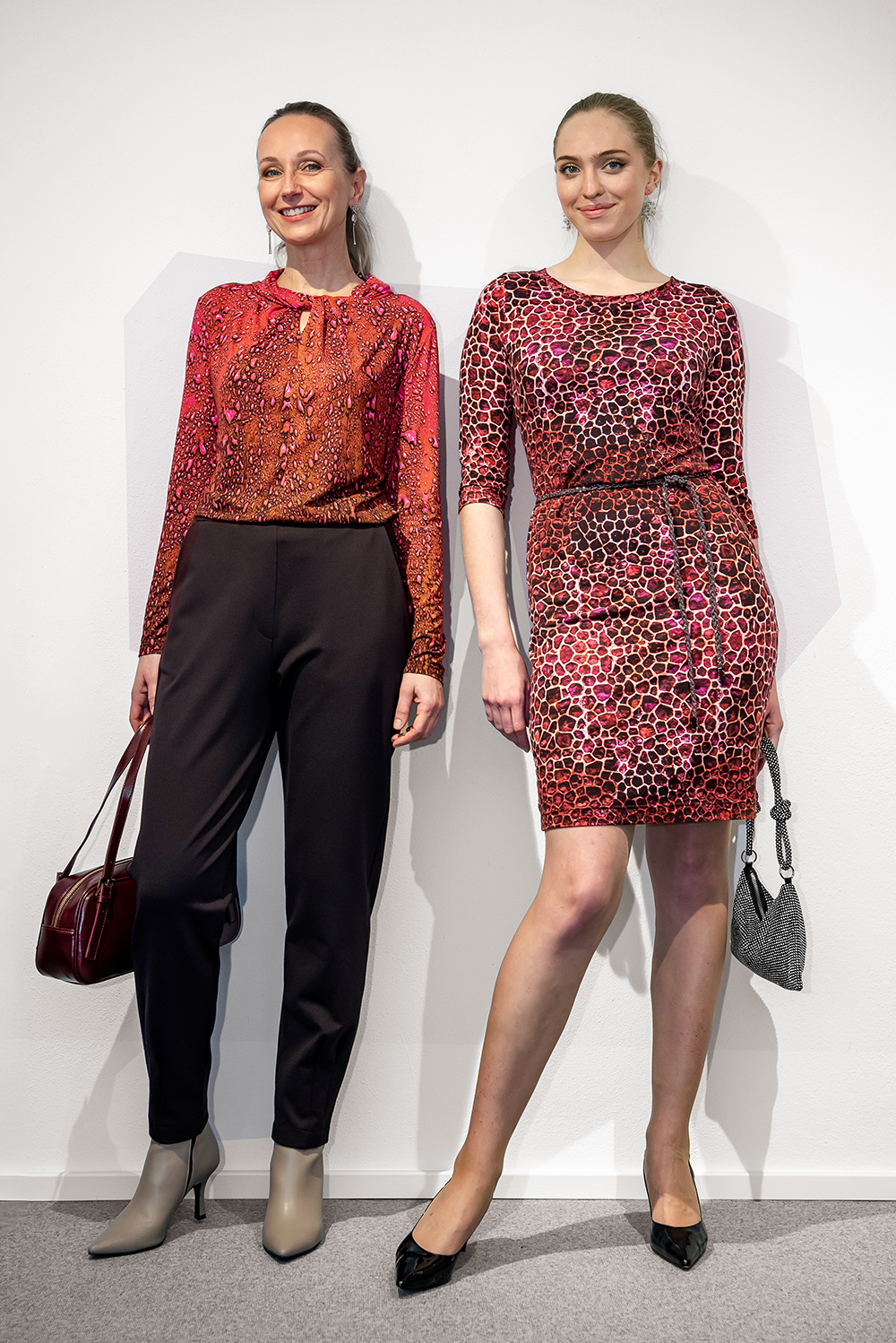 Elegantes bordeausfarbenes Shirt „Wassertropfen“ mit raffiniertem geknoteten Ausschnitt. Das Wassertropfendesign wird im Farbverlauf von Hals zu Taille dunkler. Ein echter Hingucker!
