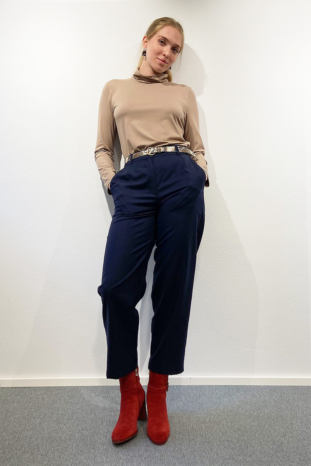 Die Gürtel gehören nicht zur Hose. Sie können extra und telefonisch bestellt werden.